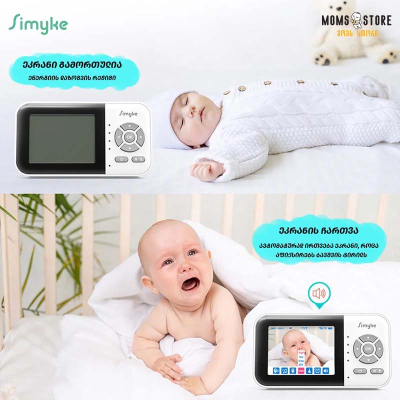 🌡როდესაც პატარას მშვიდად ძინავს მონიტორი ავტომატურად გადადის ენერგიის დაზოგვის რეჟიმზე და ეკრანი იძინებს. როდესაც ოთახის ტემპერატურა ძალიან დაბალია ან ძალიან მაღალი ან თუ თქვენი ბავშვი ტირის, მონიტორი ავტომატურად გაწვდით შეტყობინებას.